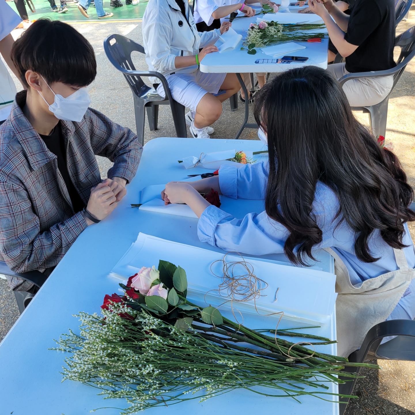 진로진학박람회 생화로 한송이 꽃다발 만들기 체험진행